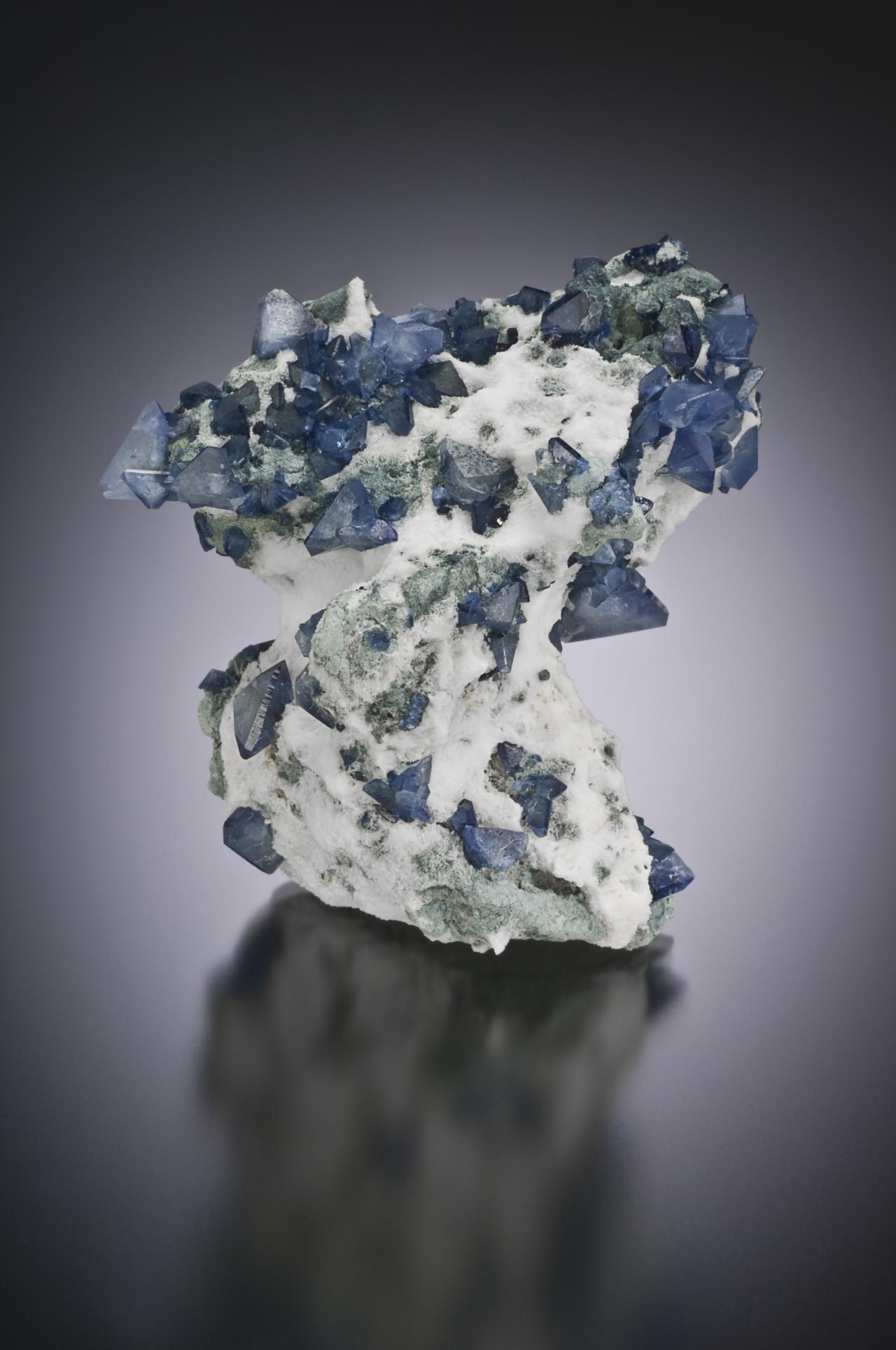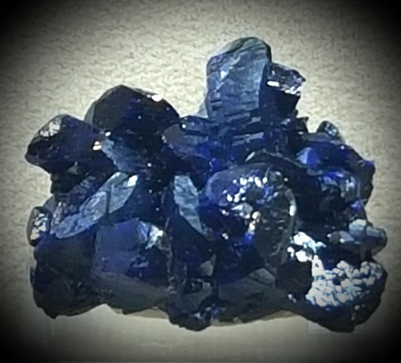 Benitoite, 5.5 cm tall, Etched by Brett, photo by Jeff Scovil